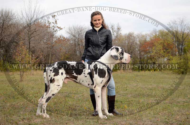 It’s should be strong. Great Dane is rather big-sized and powerful breed, so naturally he needs super strong harness, that won’t tear for a long time. The Harness, we offer, is made of finest quality leather, that won’t stretch or tear, when properly used.